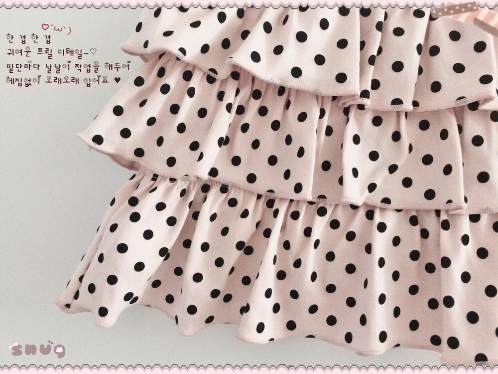 프릴 밑단마다 날날이 봉제 작업을 하여 헤짐 없이 오래오래 착용해주실 수 있으며