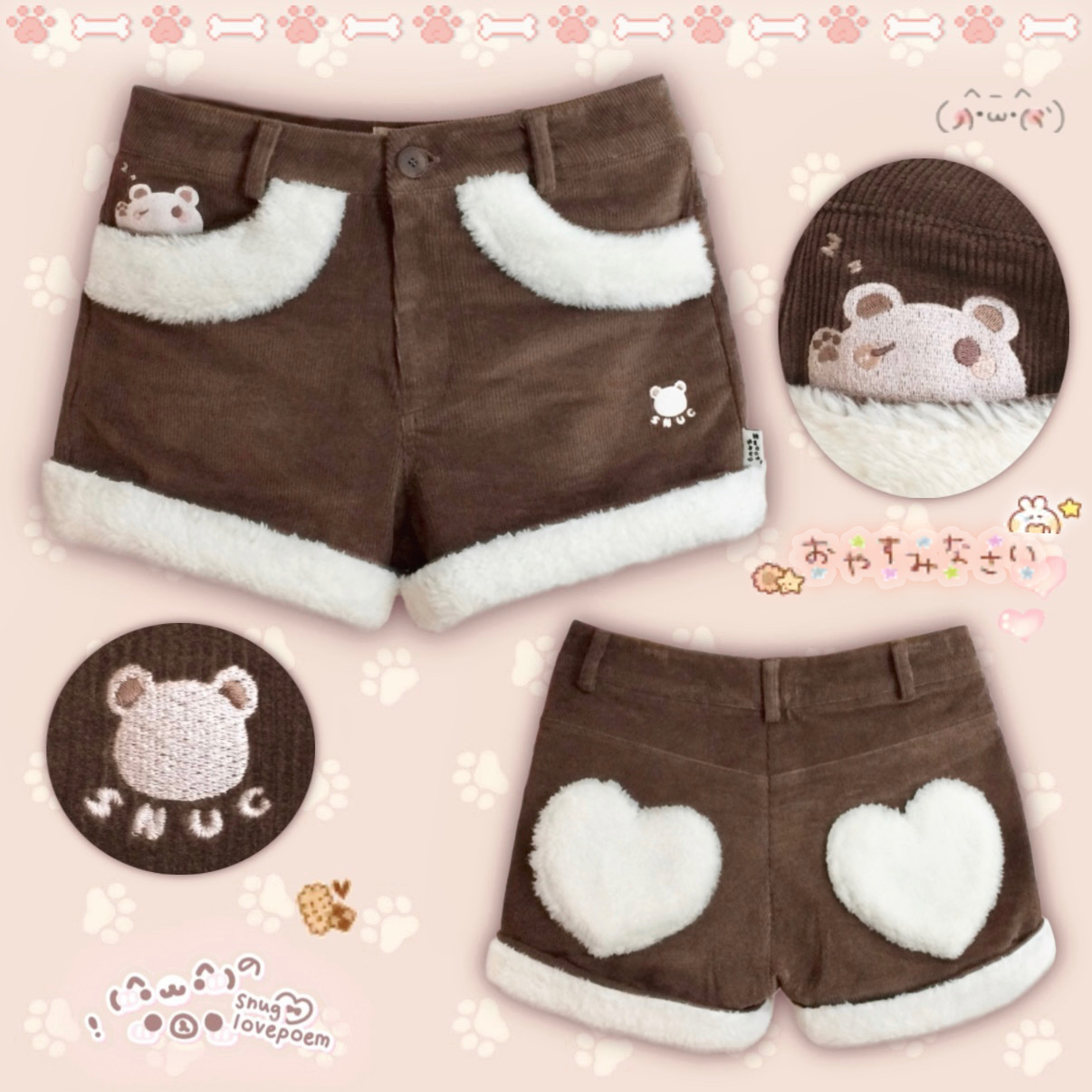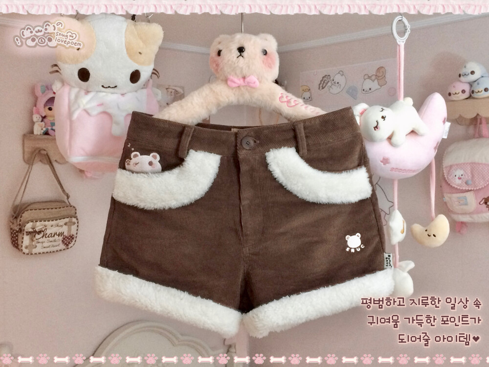 가을부터 겨울~ 봄까지 따스히 착용하실 수 있는 부드러운 코듀로이 소재로, 스판이 함유되어있어 착용감이 뛰어난 퍼 쇼츠입니다 ᡣ(・⩊・)