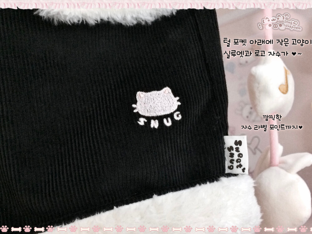 깜찍한 사이드 자수 Sweet Snug 라벨 디테일로 스너그의 작은 라벨 포인트를 넣어주었어요 ♫