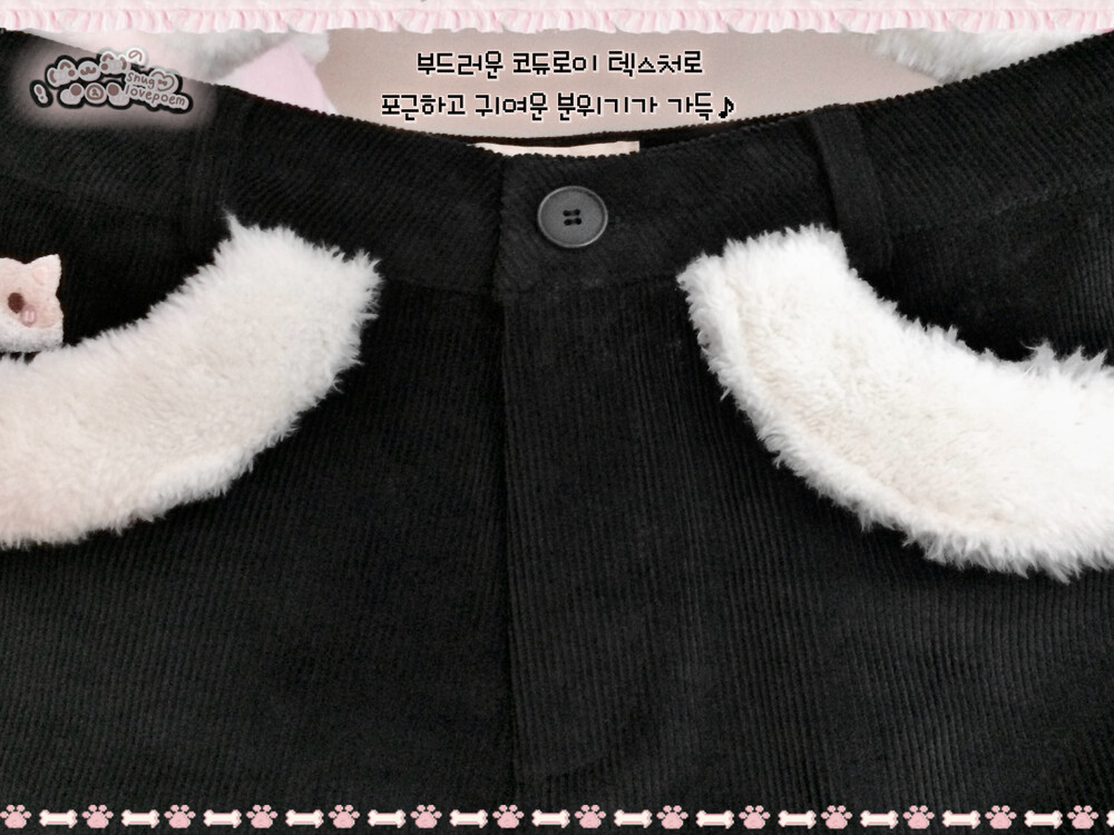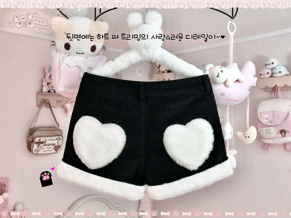 앞면 포켓, 그리고 뒷면의 하트 퍼 트리밍과 밑단 퍼 디테일로 뽀송뽀송 귀엽고 러블리한 무드를 극대화 시켜줍니다 ( ៸៸ › ⩊ ‹ ៸៸)♡